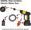 - 【Cordless Pressure Washer】 The cordless pressure washer gun is equipped with a 48V, 2.0An super capacity battery. You can use the Electric Pressure Washer Gun for at least 40 minutes. Easy to store and carry