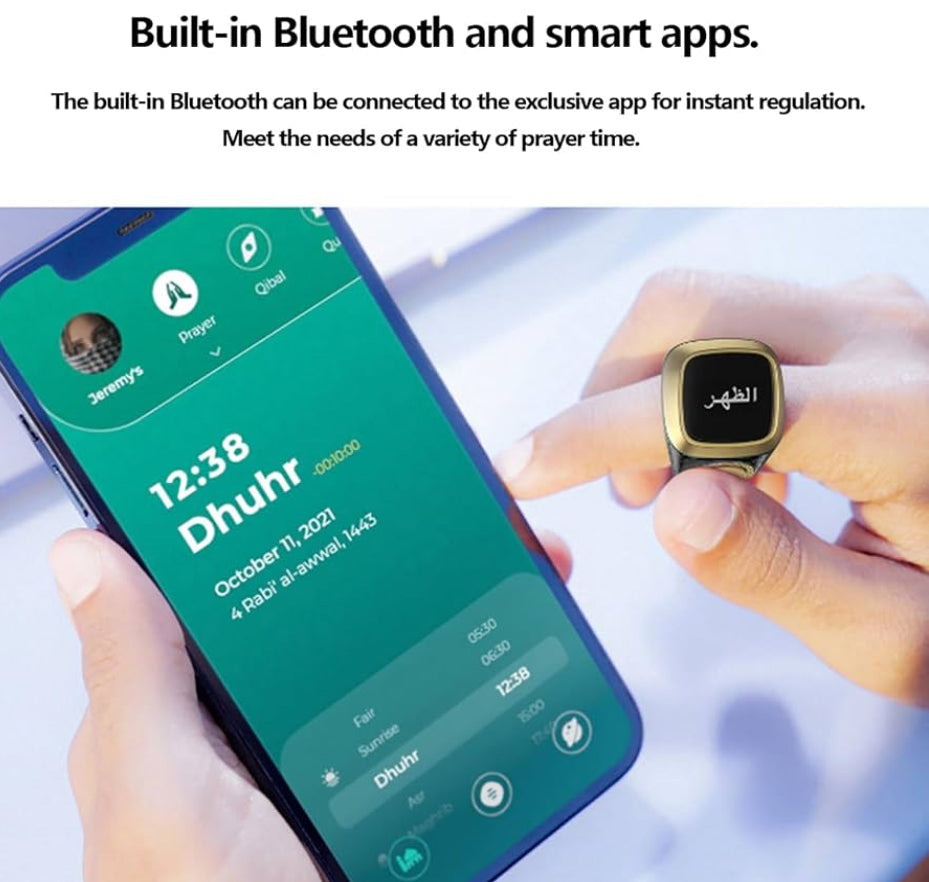 - √【5 Prayer Time Reminders】With built-in Bluetooth, Qibla Ring is easily connected to the Qibla app. You can receive 5 prayer time reminders via Qibla Ring or the smartphone app.
