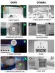 Fan Speeds: 3 Modes – Turbine, Hurricane, Fine Mist